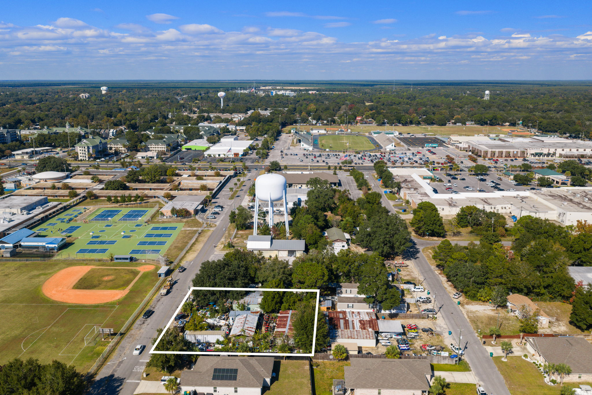 one half acre parcel located right off of Racetrack Road across the road from Pryor Middle School, zoned service shop, has been used as a lawn mower repair shop, owner is moving and in the process of cleaning up now, great location consists of 2 buildings a 1300 sf shop and a 1400 sf house