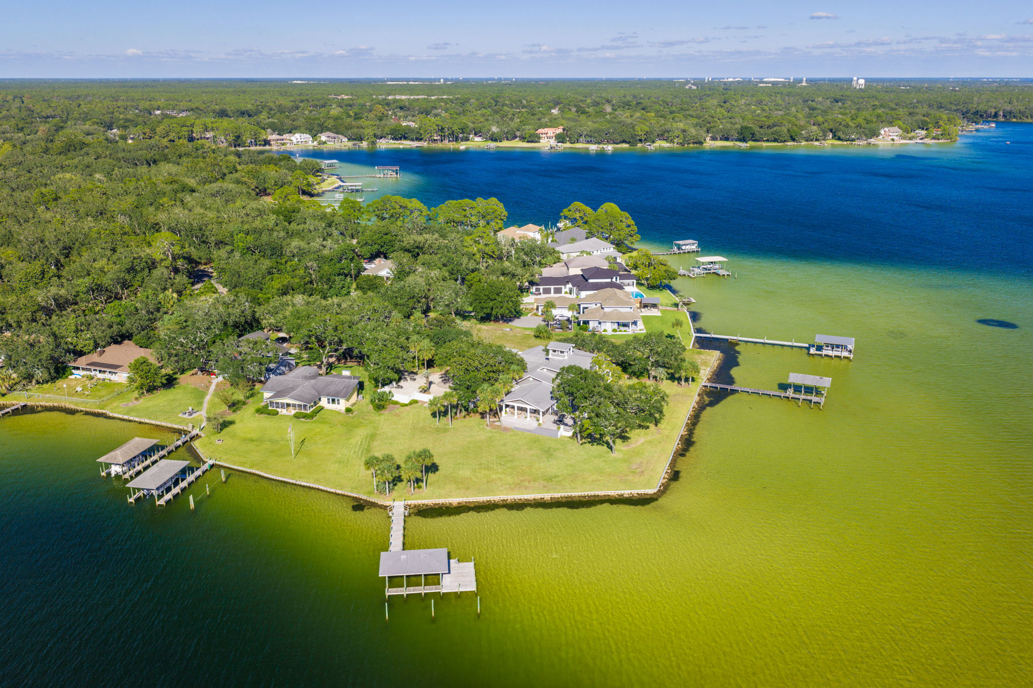 Welcome to 11 Paradise Road — an absolutely remarkable waterfront estate perched on 1.18 acres at the corner of Garnier Bayou and Poquito Bayou in Shalimar, Florida. This 6,591 square foot, three-story home offers a rare combination of privacy, scale, and sweeping water views.