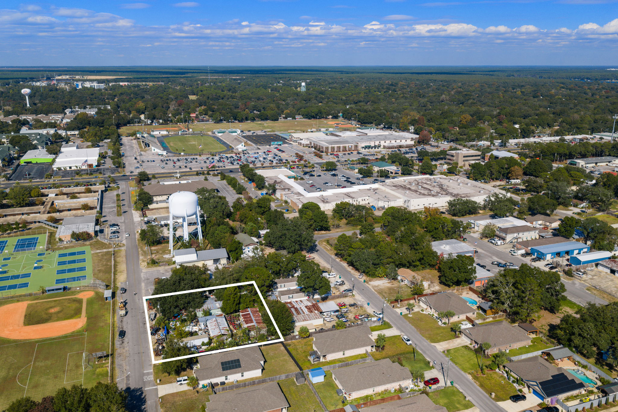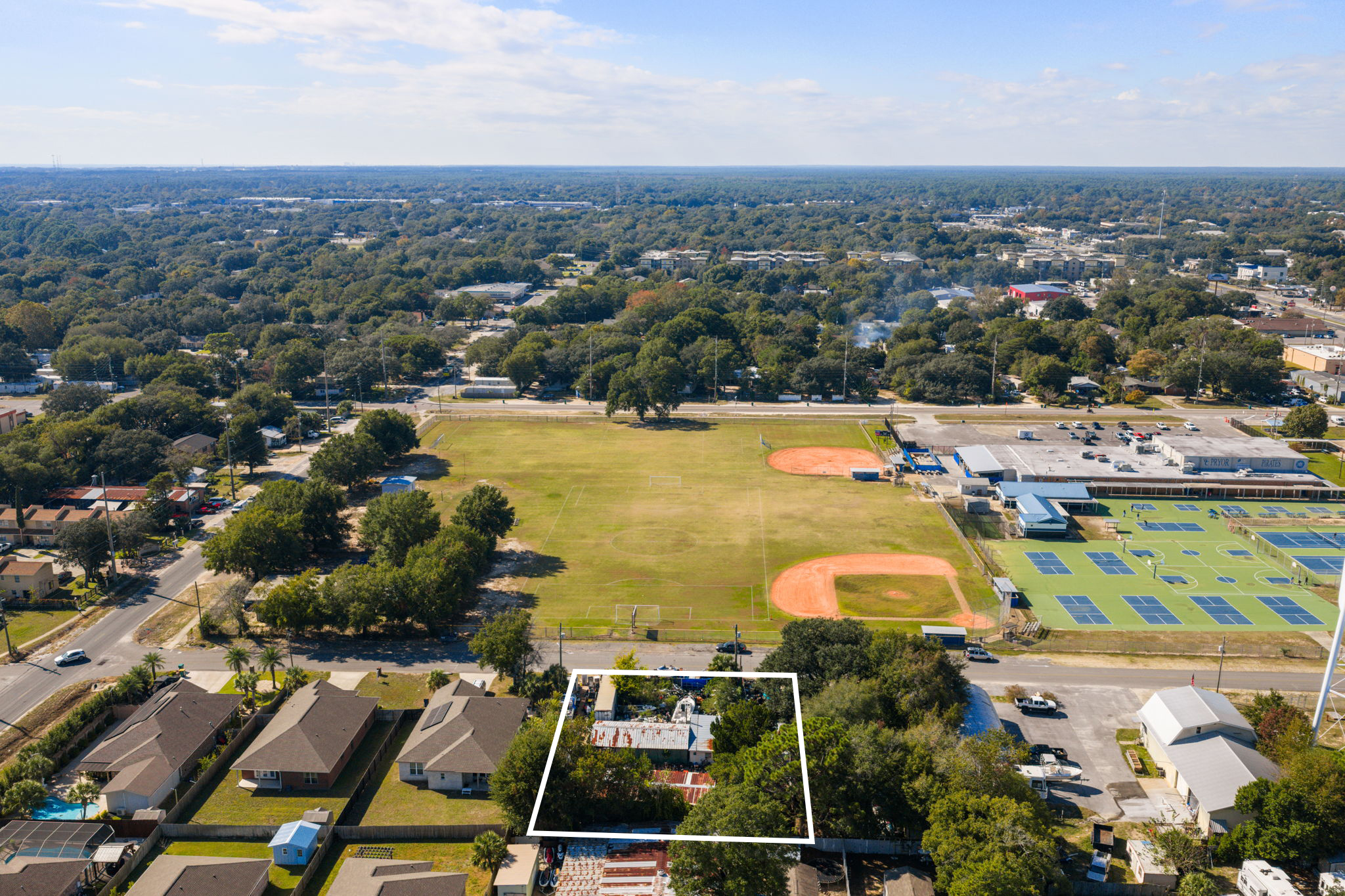 one half acre parcel located right off of Racetrack Road across the road from Pryor Middle School, zoned service shop, has been used as a lawn mower repair shop, owner is moving and in the process of cleaning up now, great location consists of 2 buildings a 1300 sf shop and a 1400 sf house